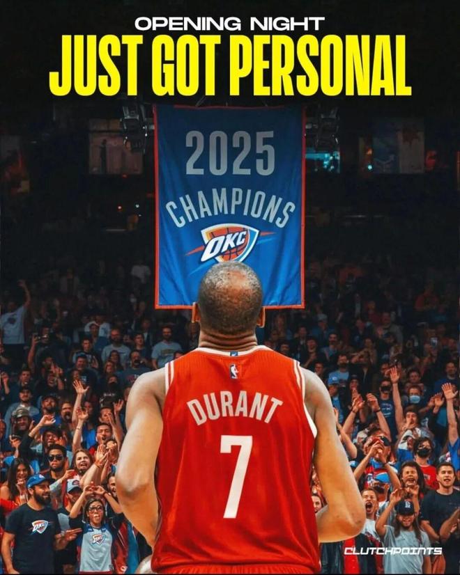 NBA长草期结束了,明天就是常规赛的揭幕战,我终于不用再水了! 揭幕战首战就是流量话题直接拉满的卫冕冠军雷霆主场迎战总冠军最有力竞争者之一的天赋横溢火箭。 与其说是雷霆对火箭,其实不如说新雷霆对老雷霆。 火箭排出的首发名单是 阿门、杜兰特、小史密斯、申京、亚当斯 火箭这首发是绝对是故意的,一共派出了三名前雷霆球员,杜兰特和亚当斯以及申京,申京是 火箭当年通过与雷霆 的交易得到的,严格来说,也是前雷霆球员。 火箭这首发阵容对雷霆来说,针对性极强,伤害性极大。 你敢相信,火箭首发5人竟然4人身高6尺11(2米11),最矮的阿门也2米01,首发平均身高6尺10(2.08米),联盟能排出这样有实力的死亡五大的,也就只有火箭了。 遥想当年的火箭,196的塔克当中锋……放在现在的火箭,比最矮的阿门还要矮5CM 乌度卡也不装了,为什么会派出这样的首发? 因为对手是雷霆。 众所周知,雷霆最薄弱就是他们的锋线,这样的死亡四大一出,效果拔群,雷霆锋线恐遭撕碎。 平胸而论,乌度卡调兵遣将有点东西的。 当然,最大的看点仍是阿杜身披火箭战袍首战老东家雷霆,你们还记得起登哥、威少首战雷霆的场景吗? 阿杜明天将在雷霆主场见证后雷霆三少时代的 雷霆升起冠军旗帜 阿杜接受采访礼貌表示:这会是一种非常奇妙的体验。 心里OS:我会狠狠地干死他们。 雷霆球迷不会原谅阿杜,阿杜并不在乎这一点。 已经有专业的球迷为这场揭幕战策划好了一个镜头切给阿杜,满场嘘声一个镜头切给海王,满场欢呼 这画面感,这话题流量,不是蹭一下就起来了? 阿杜与雷霆的恩怨,说实话这么年过去,早就烟消云散了但是NBA分明在挑事,把NBA揭幕战选择了雷霆对火箭这肯定又会激起阿杜那该死的胜负欲不吹不黑,杜兰特明天的首秀,绝对不会把这当成一场普通的常规赛,肯定会全力以赴。这既是给火箭年轻人展现带头大哥的实力也是给雷霆年轻人讲讲前辈的故事一项数据,杜兰特生涯在赛季揭幕战中场均可以得到25.3分7.3篮板3.2助攻1.4抢断1.1盖帽,三项命中率为43.6/30.7/81.3%。这放在死神阿杜的生涯数据来看,只能说表现平平,效率偏低。问题来了:阿杜明天揭幕战能拿超过30分吗?我猜阿杜32分 对了,最后问题来了 雷霆该如何应对阿杜的怒火以及火箭的死亡五大? 他们能不能专攻火箭那个最矮的小鬼? 可以,阿门是首发5人中最矮的,也是防守最强的。。。