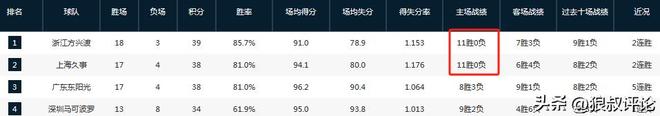 另外一个则是从数据统计清晰看到这一支上海男篮具备进入争冠热门行列,场均94.1分位居联盟第三,场均失分80分位居联盟第二。